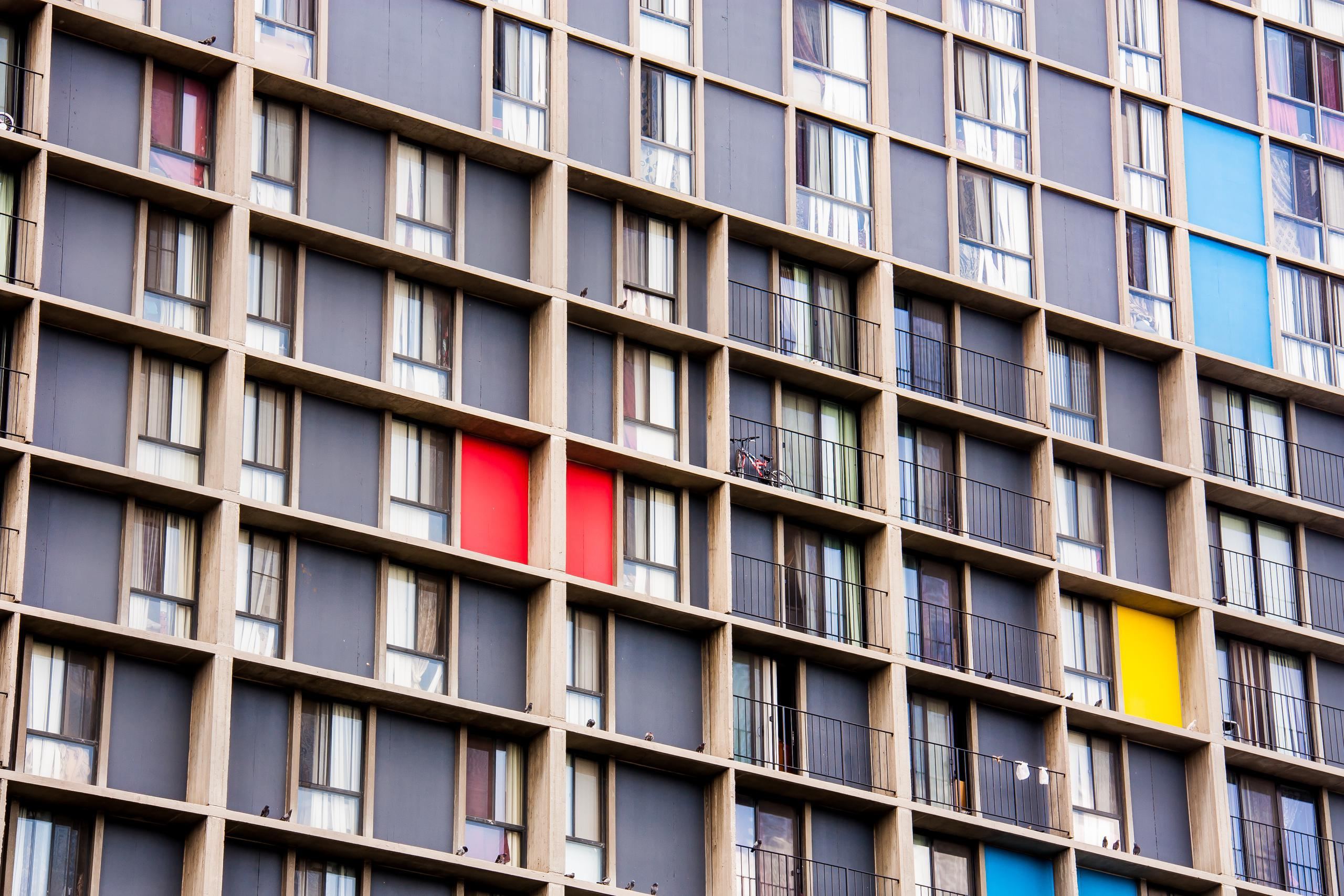 After almost 40 years, the iconic complex was due for a major renovation to insure its ongoing viability. Blumentals /Architecture provided full services covering all aspects--from unit renovations, extensive piping and system replacement, energy efficiency enhancements, common area finishes, fire sprinkler and other life safety improvements, patio door replacement and window refurbishing, concrete restoration, roofing, and finally exterior color panel recoating, bringing the complex back to its original bold color scheme. All improvements and renovations were designed to conform to strict preservation guidelines and standards outlined by the National Park Service and the Minnesota State Historical Preservation Office.